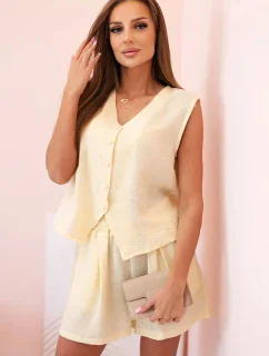 Dámska súprava z viskózy - vesta na gombíky a šortky Žltá melanž