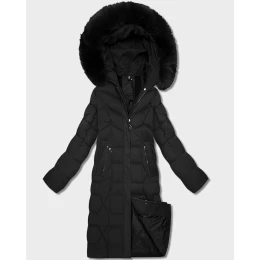 Dámska dlhá čierna bunda s kapucňou (7665#-F06)