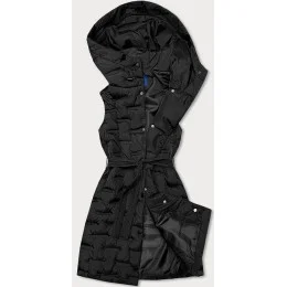 Dámska dlhá čierna vesta s opaskom (JIN217)
