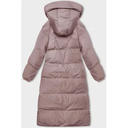 Dlouhá růžová hrubší dámská bunda s kapucí model 21246182 - J.STYLE