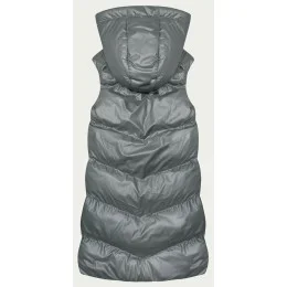 Dlouhá šedá péřová vesta s kapucí model 18823034 - J.STYLE