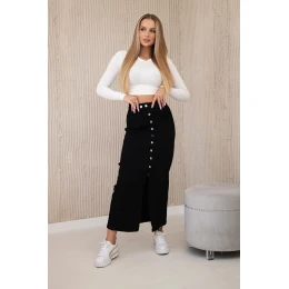Dlouhá džínová sukně na knoflíky je klasický a všestranný kus oblečení, který kombinuje eleganci s ležérním stylem. Vyrobeno z vysoce kvalitní džínoviny, zajišťuje odolnost a pohodlí při nošení. Dlouhý střih jí dodává elegantní charakter a knoflíky vpředu jsou módním akcentem, který usnadňuje oblékání a svlékání sukně. Tato sukně je ideální pro různé příležitosti, od každodenního vzhledu až po formálnější příležitosti, a dokonale se hodí k topům, košilím a svetrům a vytváří elegantní a pohodlné outfity. Dostupné velikosti XS, S, M, L.