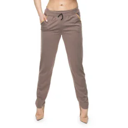 Voľné nohavice so zlatým lemovaním, zapínanie na opasok v páse, šikmé vrecká.