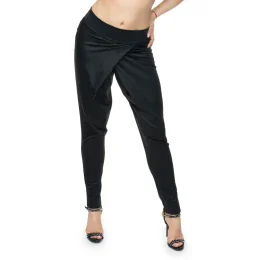 Vrecovité nohavice s presahom. Nohavice s voľným strihom v oblasti bokov a zúženými nohavicami.