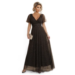Elegantní dlouhé čokoládové brokátové šaty - Numoco Basic
