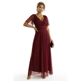 dlouhé lesklé šaty s výstřihem a krátkými rukávy vínové model 21798971 - numoco basic