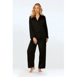 Pyžamo Amina je vyrobené z kvalitného saténu, je dlhé a má elegantnú čiernu farbu.