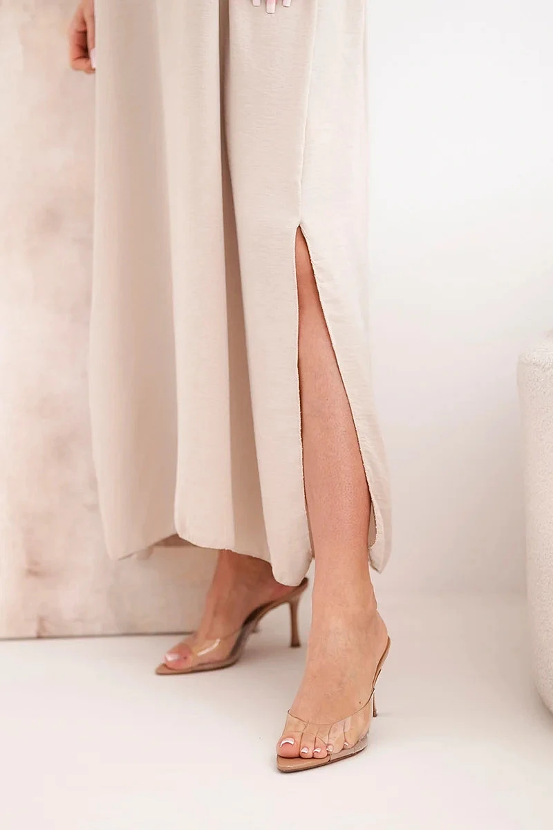 Dlouhé šaty bez ramínek tmavě béžová