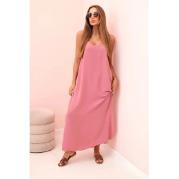 Dlouhé šaty bez ramínek tmavě růžová