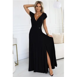 Šaty CRYSTAL značky Numoco sú dlhé, trblietavé maxi šaty s obálkovým výstrihom a rozparkom na nohách. Sú vyrobené z čiernej brokátovej látky, dokonale odhaľujú dekolt a vďaka svojmu strihu sú ideálne na tanec. Šaty sa zapínajú na zadnej strane na krytý zips pre pohodlné obliekanie a elegantný vzhľad. Poľský výrobok, vytvorený na špeciálne príležitosti.