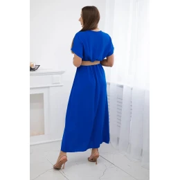 Dlouhé šaty s ozdobným páskem chrpově modré barvy