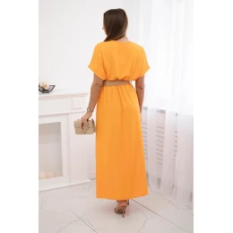 Dlouhé šaty s ozdobným páskem pomeranč