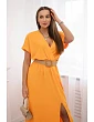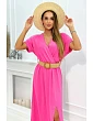 Predstavujeme vám pohodlné šaty s ozdobným opaskom. Šaty majú v spodnej časti rozparky. Šaty sú vyrobené z kvalitného materiálu. Veľmi zaujímavá ponuka pre všetky dámy. Veľkosť je univerzálna a vyhovuje dámam, ktoré nosia veľkosť S, M alebo L.