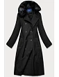 Dlhý čierny kabát s kožušinovým golierom (20201202)