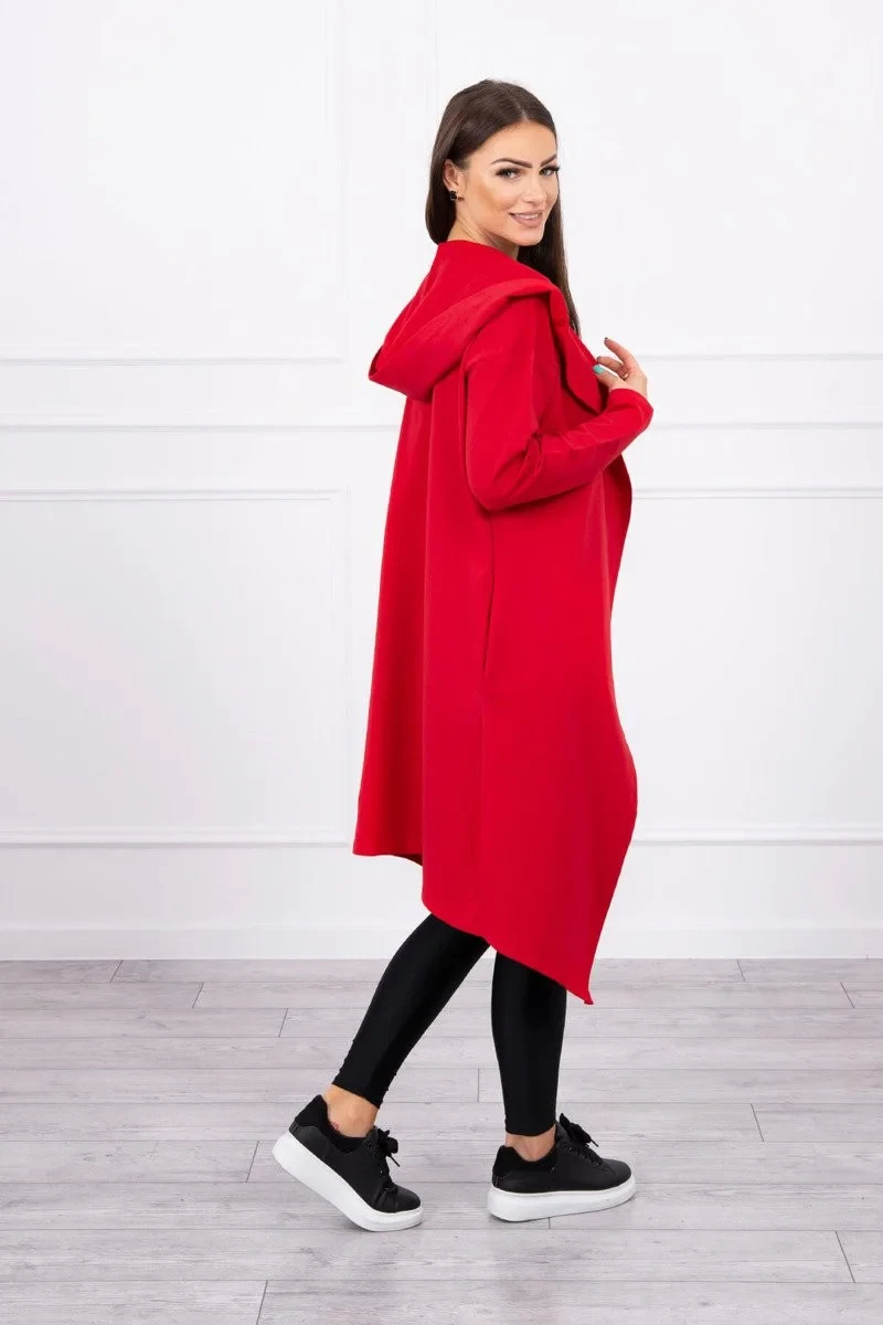 Dlouhý kabát s kapucí červený