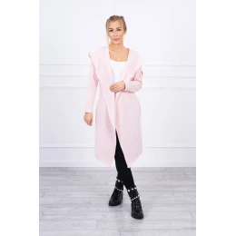 Dlouhý kabát s kapucí světle pudrově růžový