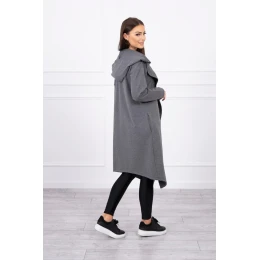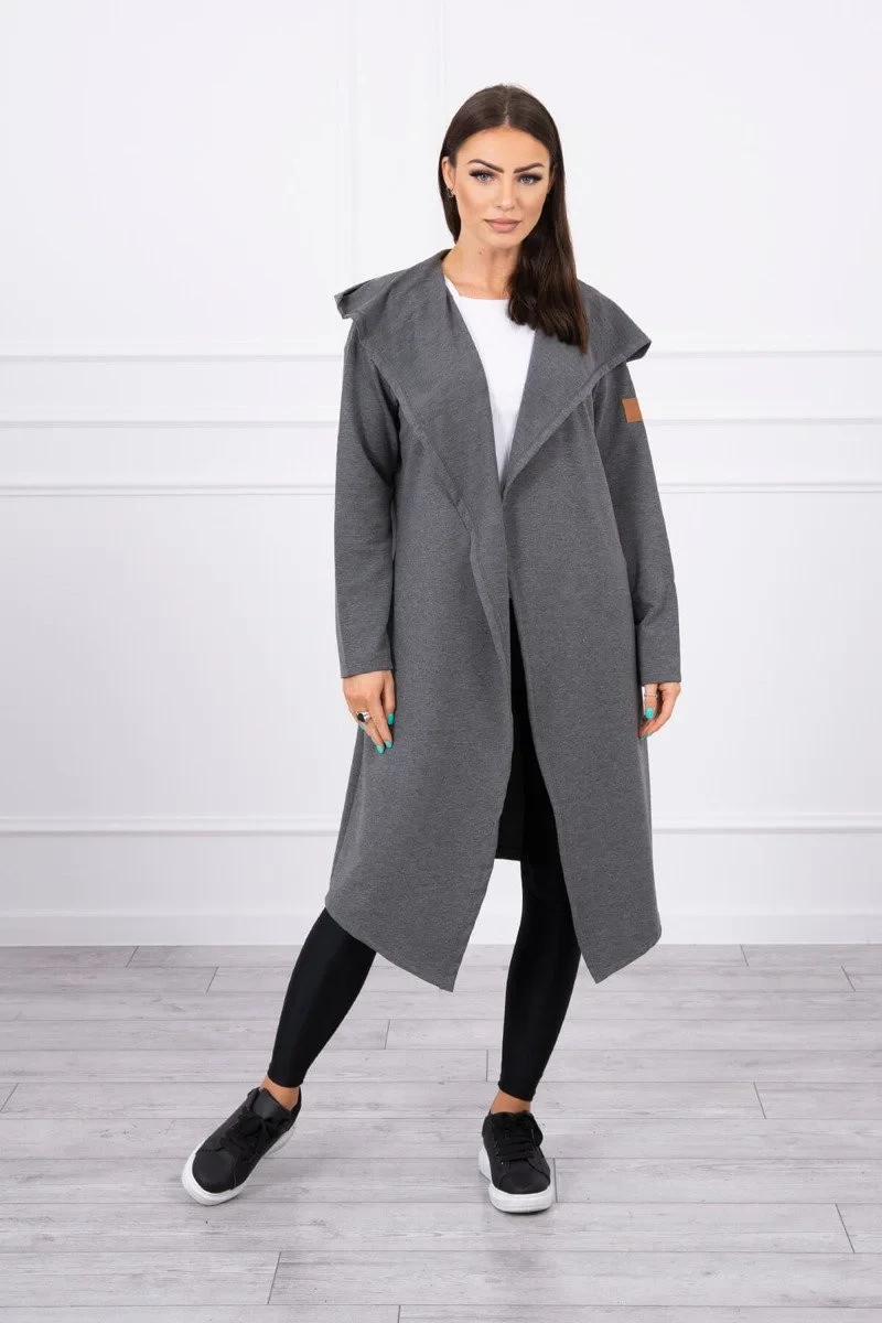 Dlhý kabát s kapucňou v grafitovej farbe