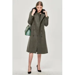 Dlouhý kabát v khaki barvě s límcem model 15837924 - Ann Gissy