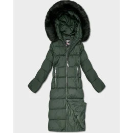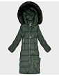 Dámska dlhá zimná bunda s kapucňou fľaškovo zelená (7688BIG)