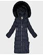 Dámska dlhá zimná bunda s kapucňou tmavomodrá (7688)
