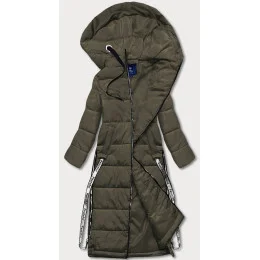 Dlhá dámska páperová bunda v khaki farbe (AG3-3038)