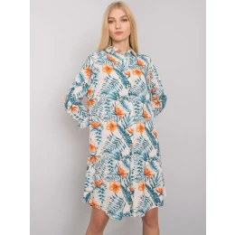 RUE PARIS Světle béžové dámské šaty s potisky.