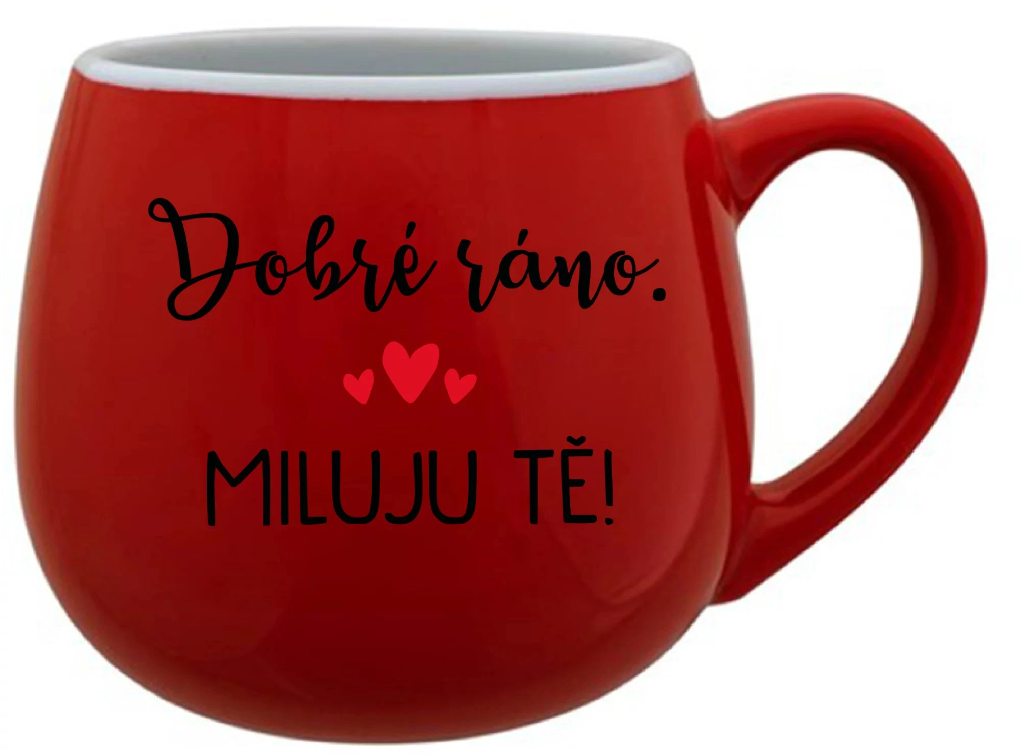DOBRÉ RÁNO. MILUJEM ŤA! - červený keramický hrnček 300 ml