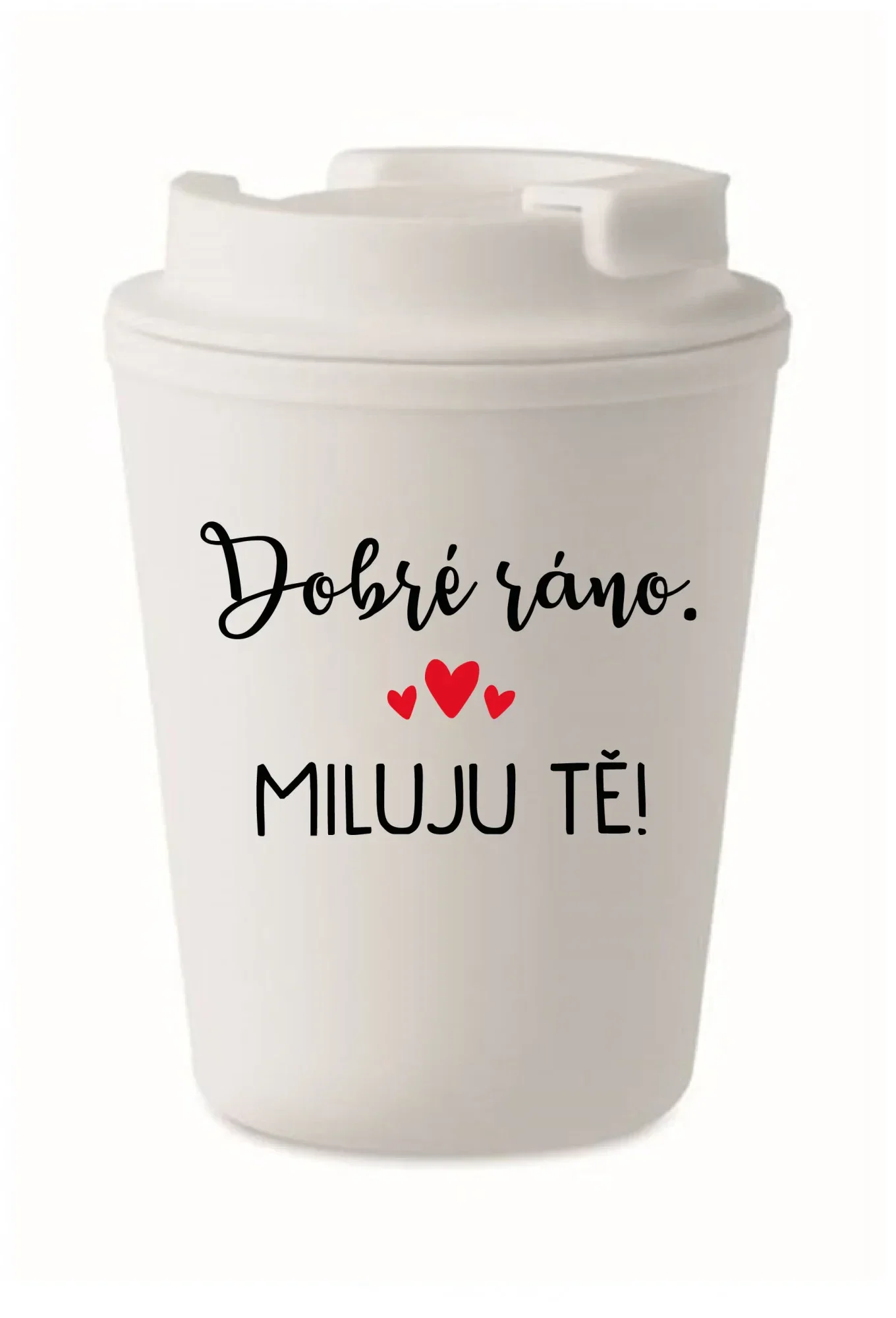 DOBRÉ RÁNO. MILUJU TĚ! - bílý termohrnek 300 ml