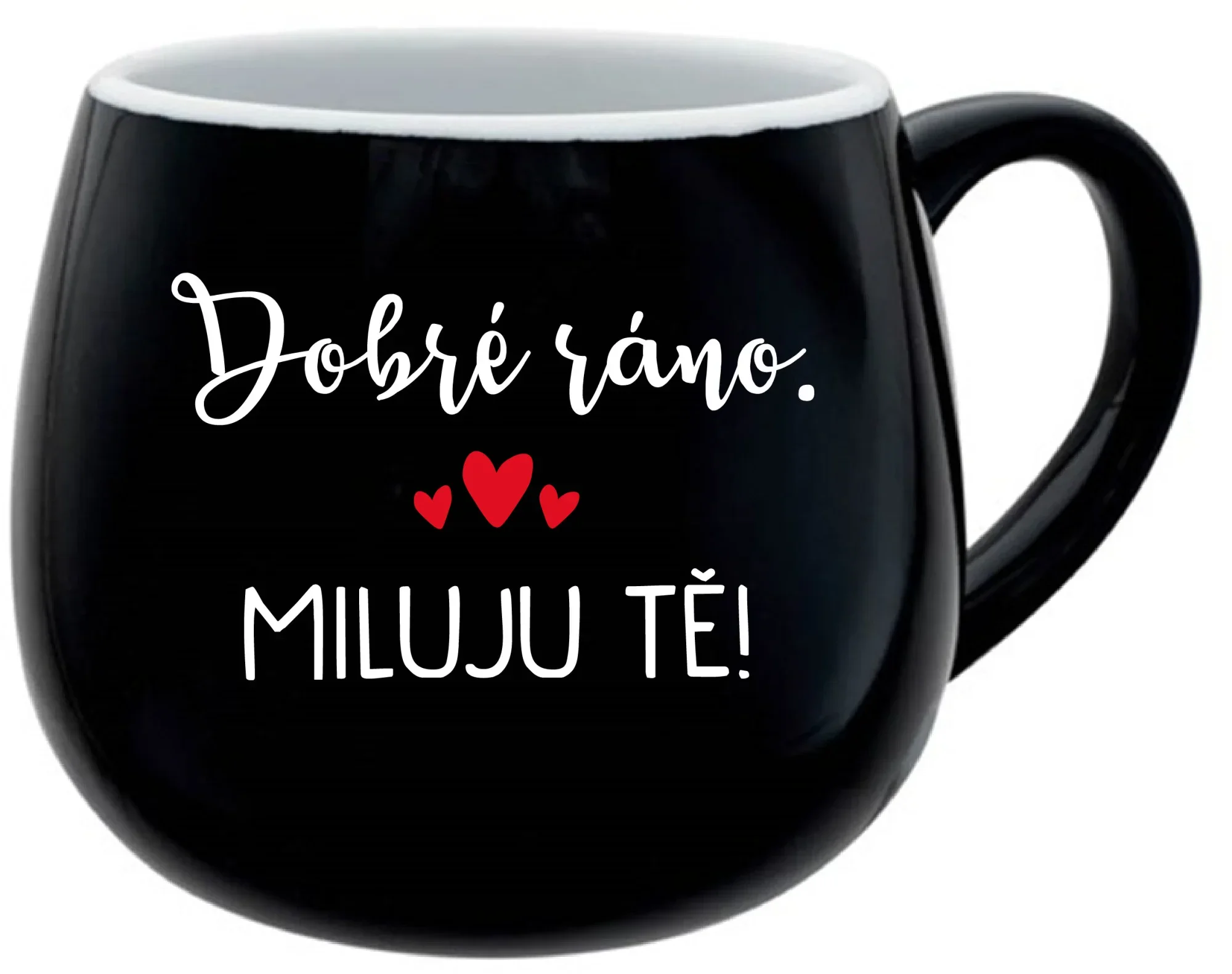 DOBRÉ RÁNO. MILUJU TĚ! - černý keramický hrníček 300 ml
