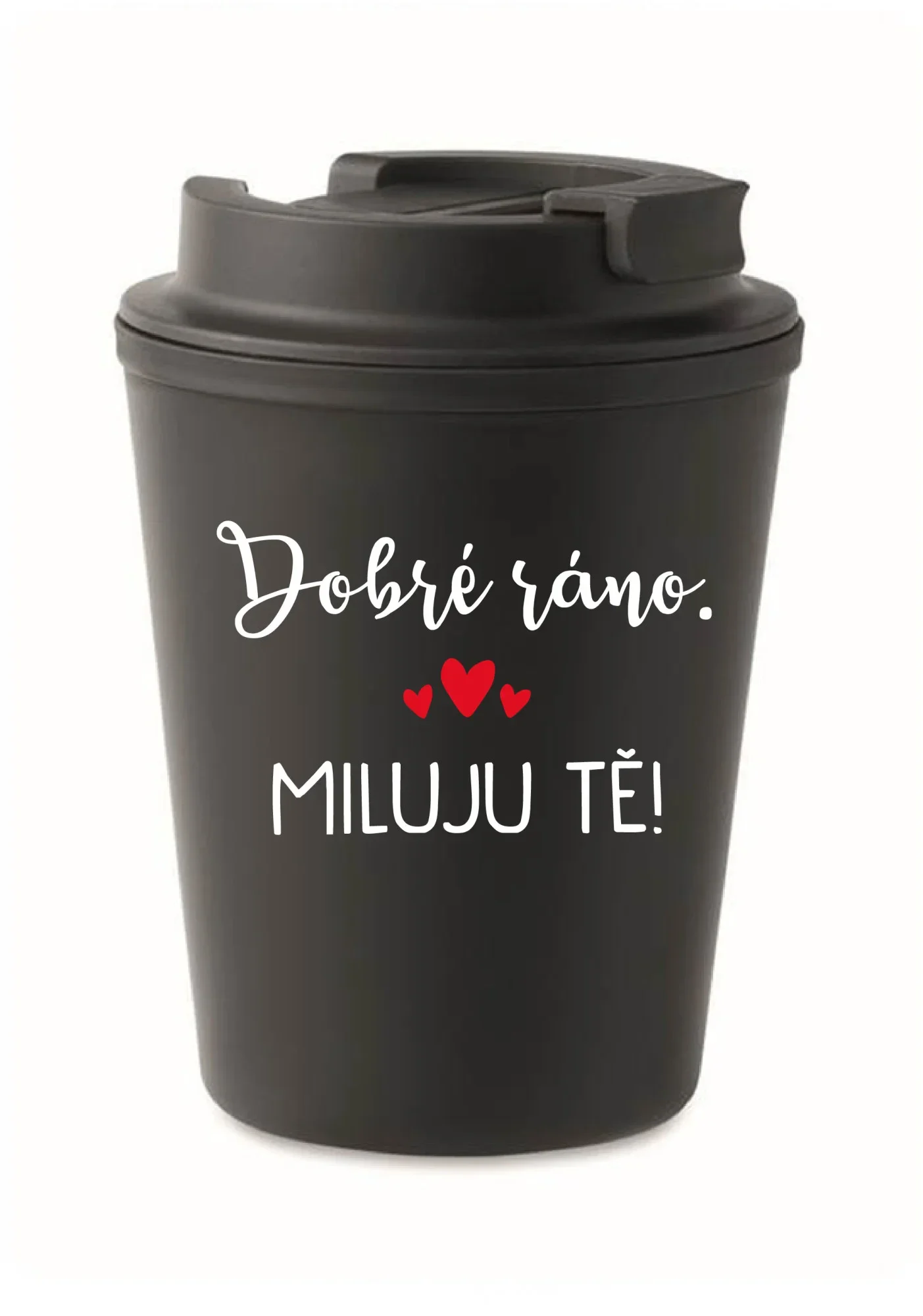 DOBRÉ RÁNO. MILUJU TĚ! - černý termohrnek 300 ml