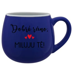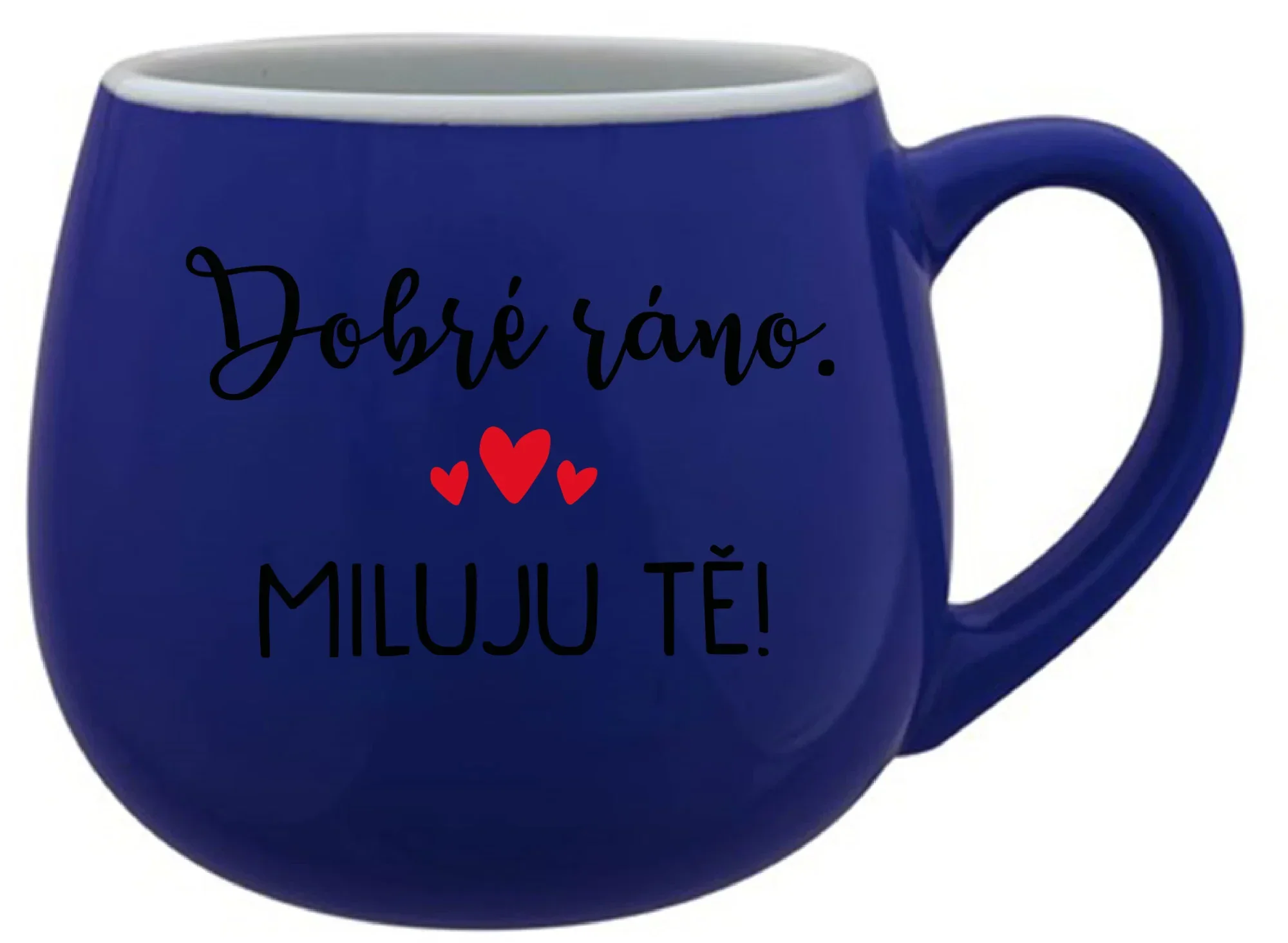 DOBRÉ RÁNO. MILUJU TĚ! - modrý keramický hrníček 300 ml