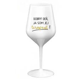 DOBRÝ DEŇ, JA SOM JEJ TERAPEUT! - biely nerozbitný pohár na víno 470 ml