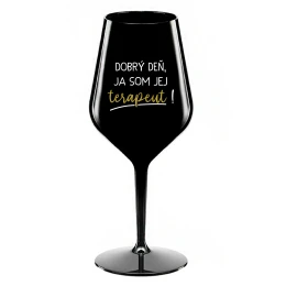 DOBRÝ DEŇ, JA SOM JEJ TERAPEUT! - čierny nerozbitný pohár na víno 470 ml