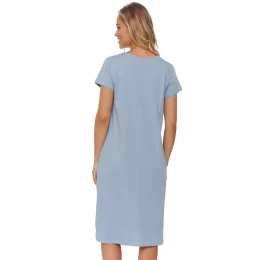 Noční čas značky Doctor Nap. Model TCB.9992. Výrobek je vyroben ze 100% bavlny. Typ výstřihu: kulatý. Má kapsy. Výrobek pro ženy. Noční stolek se zapíná na patentky. Těhotenské oblečení. Délka rukávu: krátký.
