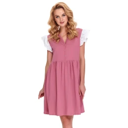 Nočná bielizeň značky Doctor Nap. model TCB.9903. výrobok je vyrobený zo 100 % bavlny. tehotenské oblečenie. miesto zapínania: vpredu. má vrecká. zapínanie nočnej bielizne na patentky. dĺžka rukávov: krátke. dĺžka: midi. dámsky výrobok. typ výstrihu: do V.