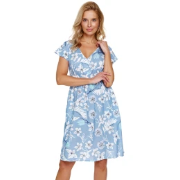 Nočná košeľa značky Doctor Nap. Model TM.5136. Vyrobená zo 100 % viskózy. S vreckami. Dĺžka: midi. Zapínanie: vpredu. Dĺžka rukávov: krátke. Výstrih: do V. Nočná košeľa so zapínaním na patentky. Tehotenské oblečenie. Dámsky výrobok.