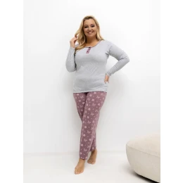 Rozmery pyžama veľkosti XL merané na plocho: blúzka: šírka v podpazuší - 57 cm, dĺžka rukávov - 58 cm, celková dĺžka - 69 cm, šírka spodku - 56 cm, nohavice: šírka v páse - 33 cm (na plocho), šírka v páse - 71 cm (po natiahnutí), šírka v bokoch - 61 cm, celková dĺžka - 96 cm.