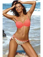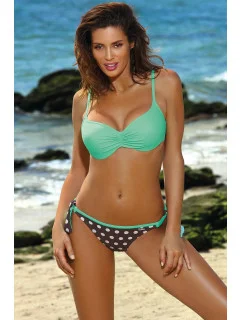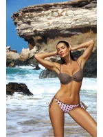 Jednofarebná podprsenka má tvarované košíčky s jemným nariasením medzi nimi. Ramienka sa dajú nastaviť, ale nedajú sa odopnúť. Podprsenka sa vzadu zapína na pohodlnú sponu. Brazílske nohavičky sa zaväzujú na bokoch a vzadu sú nariasené. Nohavičky zdobí módny bodkovaný vzor.