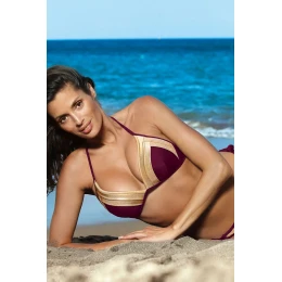 Push-up plavky. Sexy, tvarující postavu v oblasti poprsí, velmi ženské. Tropické barvy v kombinaci se zlatou vytvářejí velkolepý efekt, do kterého stojí za to se ponořit. Model dodává atraktivitu, šarm, sex-appeal? To je ono.