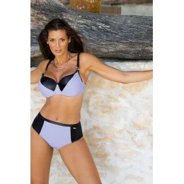 Dvojdielne plavky Perfect Fit, perfektne padnúce. Tepelne lisované košíčky, stála výplň, malý push-up. Ramenné popruhy nastaviteľné na širšie, prispôsobené veľkosti. Vyšší strih nohavičiek s pohodlným strihom, nízka elasticita. Vyrobené z talianskej tkaniny Carvico Tessuti. Glamour dekorácie. Poľský výrobok.