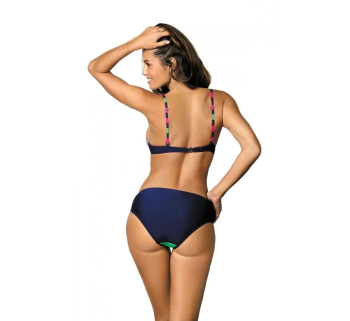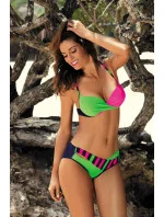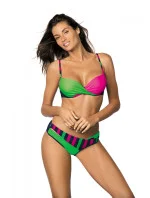 Veľmi módne dvojdielne plavky v skvelých, šťavnatých farbách. Podprsenka s vystuženými košíčkami, s kosticami a push-up výplňou (k dostaniu od veľkosti S do XL vrátane) - dokonale zhŕňa prsia do výstrihu, pozdvihuje ich a zväčšuje. Push up s možnosťou vybratia z podprsenky. Nastaviteľné popruhy a zapínanie na pracku. Pristane vám to! Farby vyzerajú skvele na opálenom tele. Nohavičky s bočnými rázporkami, so vzorovaným pásikom, pohodlné.