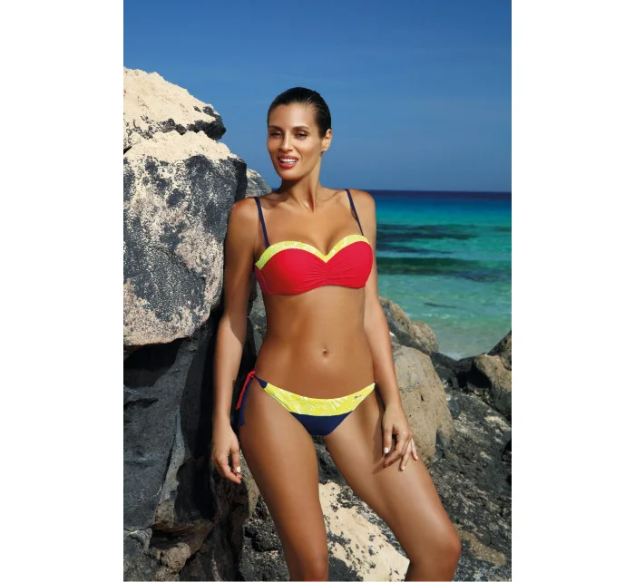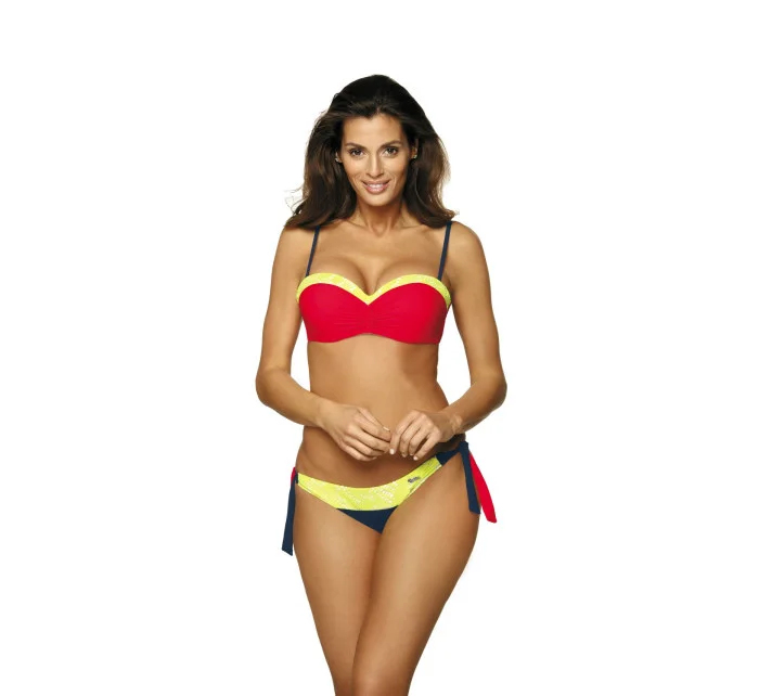 Veľmi ženské plavky s krajkovým lemovaním a šťavnatými farbami. Na rozpálenom piesku bude vyzerať senzačne. Krásne farby plaviek vás pripravia na (iste) úspešné opaľovanie. Podprsenka krásne zdobí telo, zatiaľ čo farebné lemovanie zvýrazňuje výstrih a okamžite upúta pozornosť. Tieto plavky odporúčame predovšetkým pre malé a stredné prsia, pretože na nich vyzerajú najlepšie. Podprsenka s vystuženými košíčkami obohatenými veľrybími kosticami a pripojenou veľkou push-up výplňou, dostupná vo veľkostiach (S, M, L, XL), pozdvihne, spevní a opticky zväčší prsia a vytvorí sexy dekolt. Výplň push up je možné z modelu úplne vybrať. Nastaviteľné popruhy, ktoré je možné pohodlne odopnúť. Nastaviteľné popruhy, ktoré je možné pohodlne odopnúť. Bokové nohavičky, zvodne zaviazané na bokoch, na pohodlnej podšívke, s krajkovým lemom. Skvelý návrh na leto!