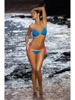 Dvojdielne plavky v krásnych tropických farbách. Jeden z najlepších modelov z kolekcie Leto 2018.Podprsenka navrhnutá pre stredné a menšie prsia, vystužená, s trvale umiestnenou push-up výplňou. Spolu s vertikálnymi veľrybími kosticami pevne približuje prsia k dekoltu, dvíha ich a opticky zvodne zväčšuje. Vytvára zmyselný dekolt. Ozdobné, kontrastné lemovanie v hornej časti podprsenky prechádza na štíhle ramienka, ktoré sa pekne zaväzujú za krkom. Obvod s vsadkami v kontrastnej šťavnatej farbe, vzadu zaviazaný. Nohavičky sú dokonale zladené s podprsenkou, hladké, sexy a zaväzujú sa na bokoch, takže vyzerajú nesmierne žensky. V týchto plavkách budete na pláži rozhodne vyčnievať!