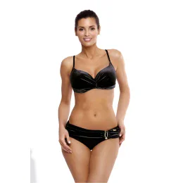 Niečo úplne iné! Tieto sexy a veľmi elegantné plavky sú vyrobené z talianskej tkaniny pripomínajúce mäkký velúr. Má nádherný perleťový lesk a nádherný vzhľad, okamžite dodáva šarm, láka oči a nádherne zdobí telo. Push-up podprsenka s tvarovanými, vystuženými košíčkami s kosticami v klasickej, osvedčenej, veľmi dobrej konštrukcii - umožňuje zhromaždiť, pozdvihnúť a opticky zväčšiť prsia. Push-up je súčasťou každej veľkosti plaviek a nie je z modelu odnímateľný. Ramienka sú nastaviteľné, obvod sa pohodlne zaväzuje vzadu. Úhľadné nohavičky s opaskom vpredu. Na výber je mnoho fascinujúcich farieb. Objednajte si ju a presvedčte sa sami. Odporúčame ju na 100%.