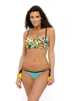 Pôsobivé, veľmi ženské plavky s kvetinovou podprsenkou a hladkou, na bokoch zaviazanou spodnou súpravou. Kvetinový top vyzerá štýlovo a romanticky. Vďaka dobre tvarovaným košíčkom môžete prsia rýchlo zhromaždiť a pozdvihnúť, čím ich opticky zväčšíte. Súčasťou plaviek je push-up výplň, ktorá umožňuje zväčšiť prsia o viac ako jednu veľkosť, a pritom zachovať krásny, prirodzený efekt (push-up výplň je súčasťou každej veľkosti plaviek a nie je z modelu vyberateľná). Plavky majú pohodlné zaväzovanie na chrbte a ramienka, ktoré je možné z modelu úplne odopnúť. Nohavičky sa zaväzujú na bokoch a sú zakončené koketnými strapcami - vďaka týmto viazačkám si môžete veľkosť nohavičiek prispôsobiť svojim potrebám. Vysoko kvalitná talianska tkanina.