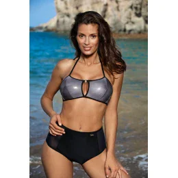 Fenomenálne plavky s efektom Wet Look. Dvojdielny model s vysokými nohavičkami s priehľadnými bokmi a vystuženou podprsenkou, ktorá vychádza z konštrukcie pohodlného športového topu.