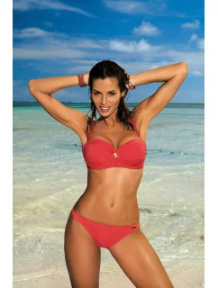 Elegantné plavky so štipkou prázdninovej ľahkosti. Súprava obsahuje hladkú podprsenku, uprostred mierne stiahnutú, s krásnou brošňou v zlatej farbe a samozrejme veľkou push-upkou, kombinovanou so sexy brazílskymi nohavičkami.
