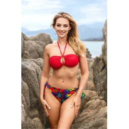 Tieto úžasné plavky sú dokonalou kombináciou elegancie, pohodlia a zmyselnosti. Sú vyrobené z najkvalitnejších materiálov, ktoré zaručujú nielen pohodlie, ale aj odolnosť, a sú ideálnou voľbou pre ženy, ktoré oceňujú módu a funkčnosť. Vďaka mäkkým, mäkkým košíčkom poskytuje podprsenka pohodlnú oporu a jemné zvýraznenie tvaru. Možnosť zaviazať si ho na chrbte alebo za krkom vám dáva nielen väčšiu voľnosť pri nosení, ale aj štýlovú rozmanitosť, ktorá vám umožní experimentovať s rôznymi vzhľadmi. Vďaka trom spôsobom zapínania podprsenky je dosiahnutie efektu pevných, veľkých a zmyselných pŕs jednoduché a dostupné pre každú ženu. Je ideálny pre tých, ktorí chcú zvýrazniť svoje prednosti a cítiť sa sebavedomejšie na pláži alebo pri bazéne. Plavky sa skladajú z dvoch častí, čo vám dáva možnosť prispôsobiť si ich individuálnym preferenciám a tvaru tela. Pohodlný strih, zaväzovacie nohavičky dodávajú plavkám ľahkosť a jemnosť a zároveň umožňujú úplnú voľnosť pohybu. Ich vzorovaný dizajn im dodáva charakter a originalitu a priťahuje pozornosť svojím jedinečným štýlom. Plavky sú podšité, čo zaručuje nielen estetiku, ale aj bezpečnosť a pohodlie pri nosení. Zbalené v taške sú praktické a ľahko sa prenášajú. Plavky boli navrhnuté a ušité v Poľsku, takže sú nielen výrazom poľskej krajčírskej tradície, ale aj zárukou najvyššej kvality spracovania a zmyslu pre detail. Ideálne pre ženy, ktoré sa chcú na pláži alebo pri bazéne cítiť sebavedomo a príťažlivo.