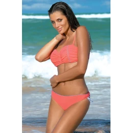 Elegantní plavky v mnoha barvách. Vyztužené košíčky jsou zdobené efektní řasením a puntíky. K velikostem S, M a L jsou push-up vycpávky. Díky nim mají prsa plnější tvar. Boky jsou vyztužené. Model má nastavitená, odpinatelná ramínka. Kalhotky klasického střihu mají nastivetelné boky. Plavky jsou ušité z kvalitní, italské látky. Vhodné na plavání i opalování.
