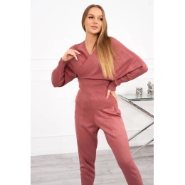 Dvojdielny svetrový set tmavo ružový